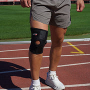 - Tukee ja suojaa polvea: Polvituen reikä auttaa stabiloimaan ja suojaamaan polvilumpiota, ja vahvistettu polvilumpion stabiloija estää siirtymistä.